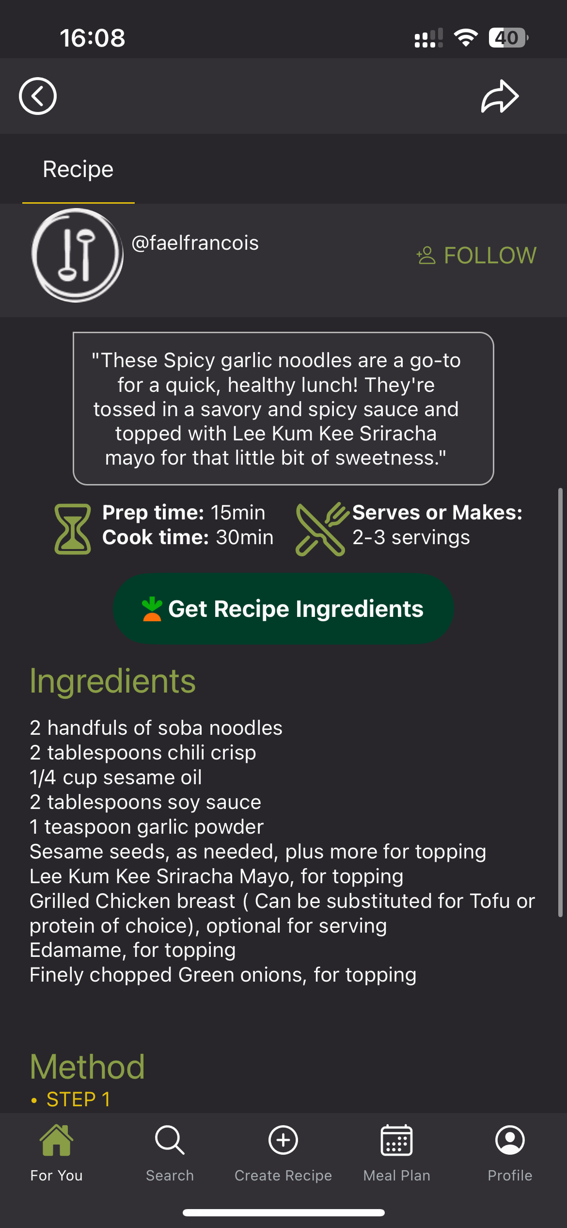 Highlighted recipe selected daily to inspire users with a trending or seasonal dish.
