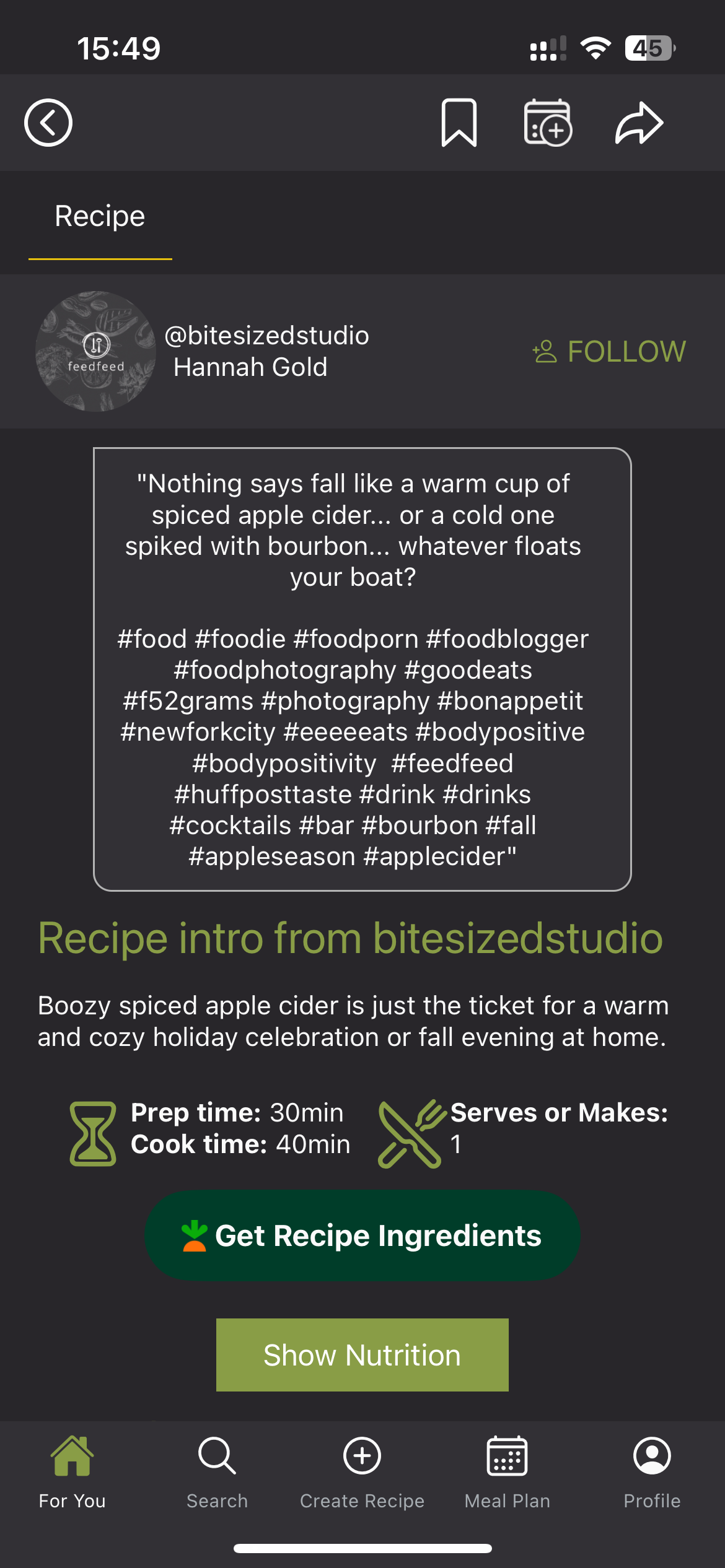 The Homepage is the primary entry point for the app, emphasizing ease of navigation and personalized user experience. Users can quickly switch between tabs for trending, categorized, and personalized recipes. The Homepage includes four primary tabs: